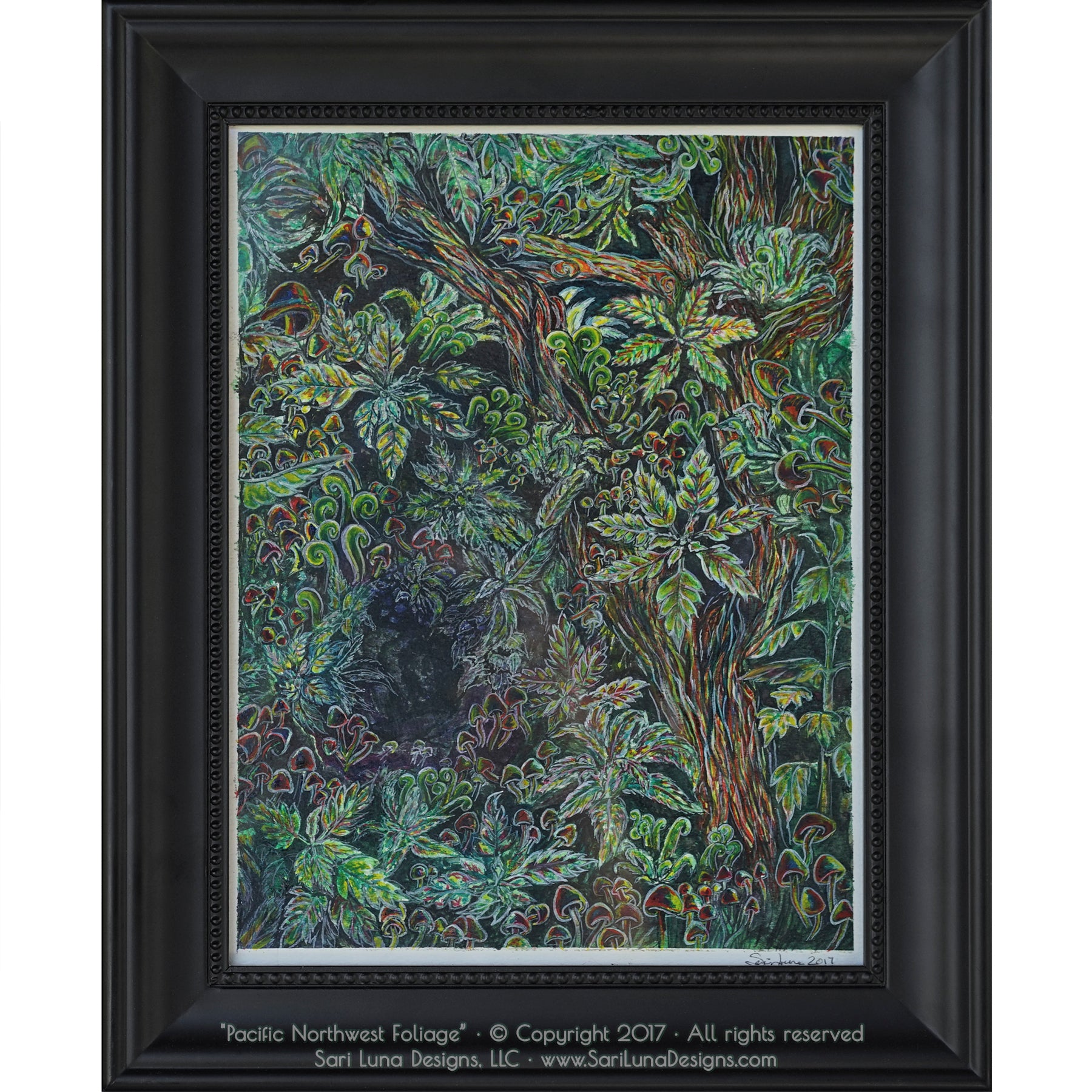 "Pacific NW Foliage" original art by Sari Luna. Sari Luna Designs, LLC · © Copyright 2019 all rights reserved · www.SariLunaDesigns.com